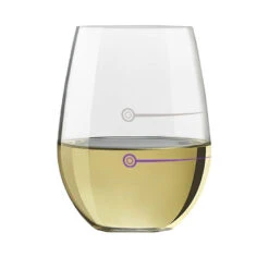- EttaVee In the Groove stemless wine glass features colorful waves design.